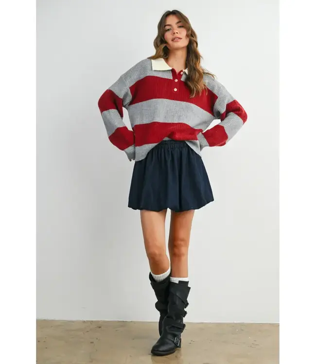 The All American Pullover is a smart and stylish buttoned striped collared long sleeve top that features classic stripes, a crisp collar, and full button-down front, it's perfect for work, casual outings, or layering under jackets. Read more.