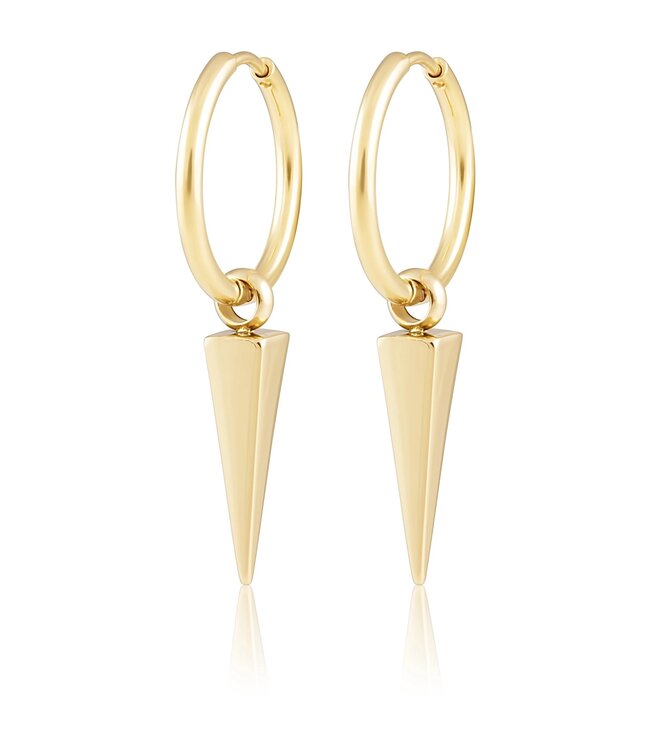 Edgy and sleek. These hoops have an interchangeable spike you may remove it and wear alone. 1.5" 18k Gold plated Stainless steel. Hypoallergenic. Tarnish Resistant.