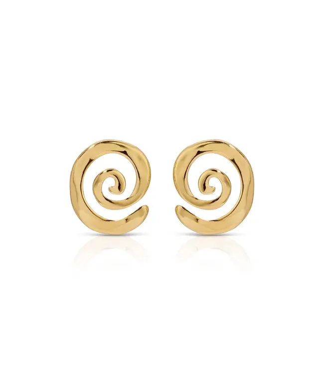The Aura Swirl Stud Earrings features 18K gold plating with a statement swirl design.