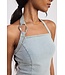 Alert the press the Batula Top the talk of the town, it features a stretch denim fabric, raised seem accents, mid- waist hemline with a halter neck and a statement gold hardware. Read more.