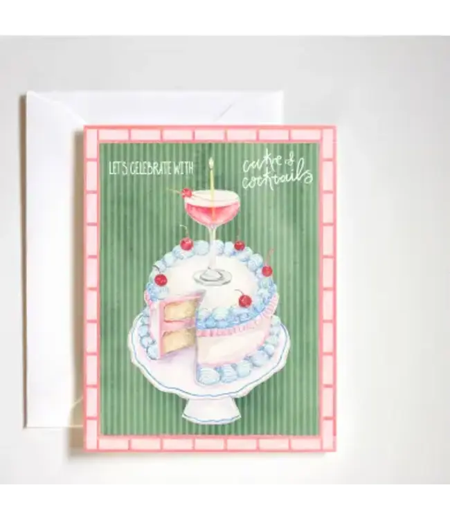 Cake and cocktails for the perfect birthday celebration! All artwork and lettering is hand drawn and painted, blank inside and white envelope.