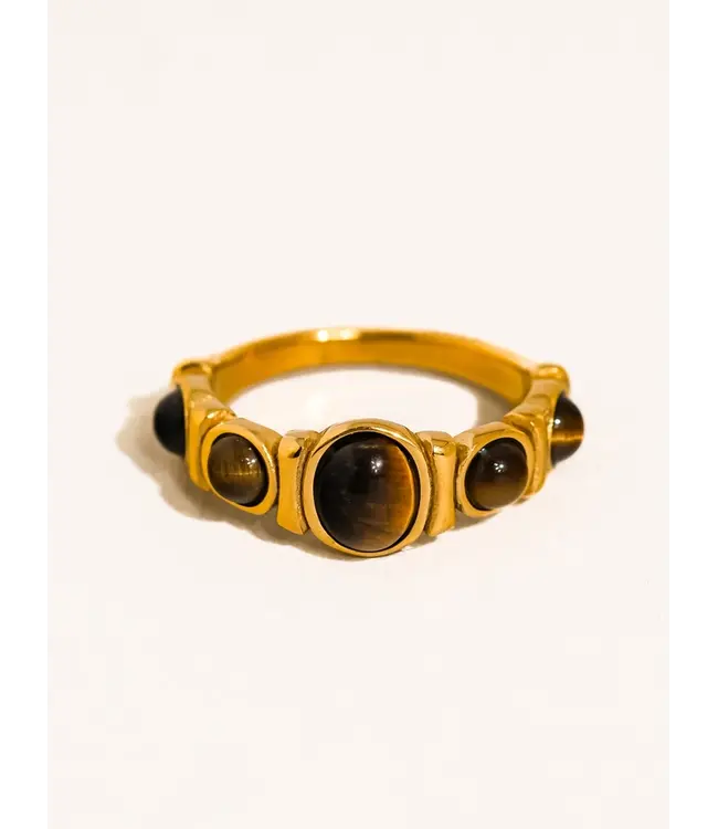 The Canso features an 18K gold non-tarnish, 18K gold plating, stainless steel band a natural tiger eye stone. Read more.