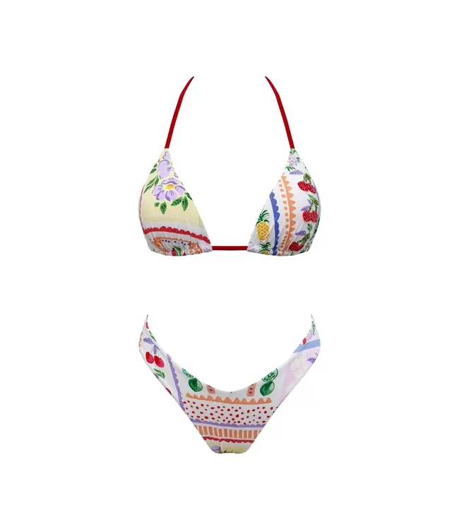 The Cherry Garden Bikini Bottom is a cheeky piece that features a cherry bead detail, v-cut waistband and moderate cheeky coverage.