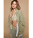 The Country Lines Shacket is designed as a long sleeve roomy fit shirt top in denim with a dainty floral pattern and raw hemline.