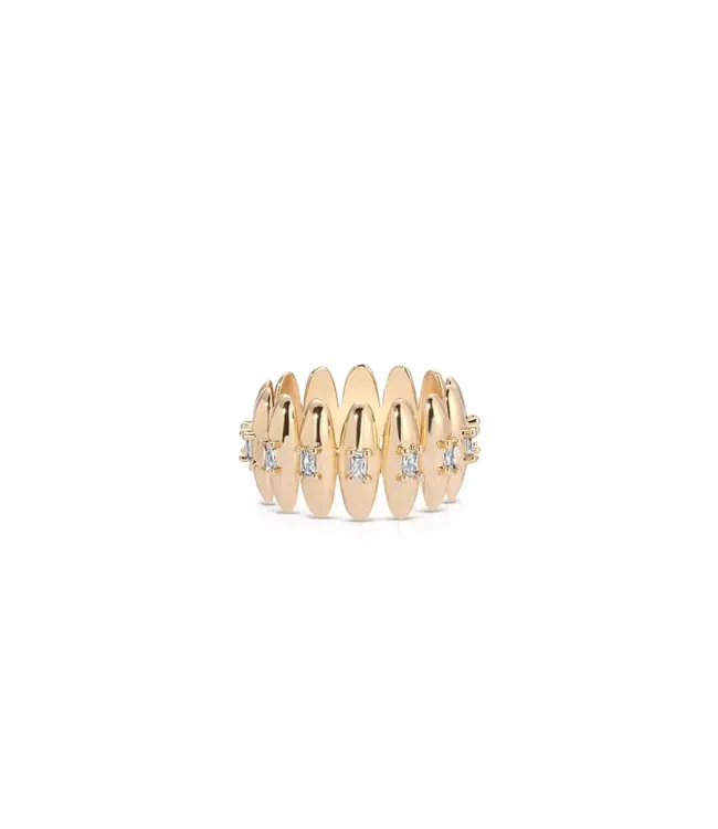 The Dome Band Rinig features a 18k gold-plated brass and cubic zirconia; 0.4 in length