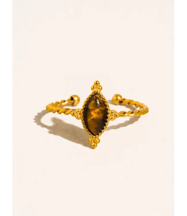 Dorisse Ring features 18K Gold Non-Tarnish Brown Gemstone Adjustable Ring,18K Gold Plating
