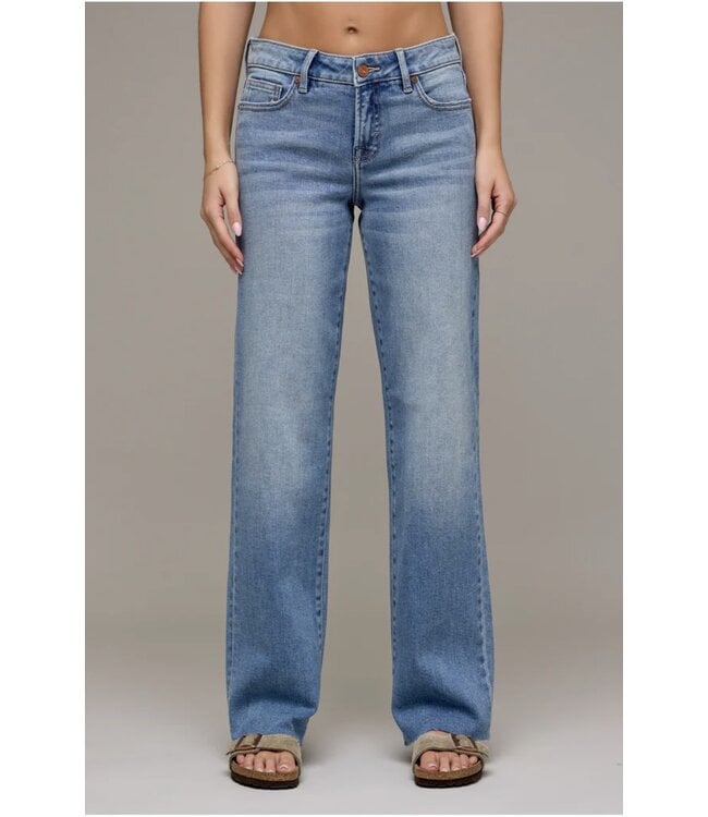 New denim is always a yes in our book, the Georgia Jeans features a low-rise waist with a front button and zipper closure, classic stretch, with a medium denim shade and straight leg fit.