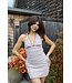 The I Got Better Mini Dress is the perfect Summer to Fall transition piece featuring a brown gingham pattern. v-neckline, adjustable halter necktie and open back.