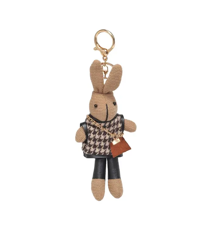 Add a playful twist to your accessory collection with the Kyle Bag Charm. This adorable handmade charm features a stylish bunny adorned in chic attire, complete with a miniature handbag—perfect for adding a whimsical touch to your favorite bag or keys.