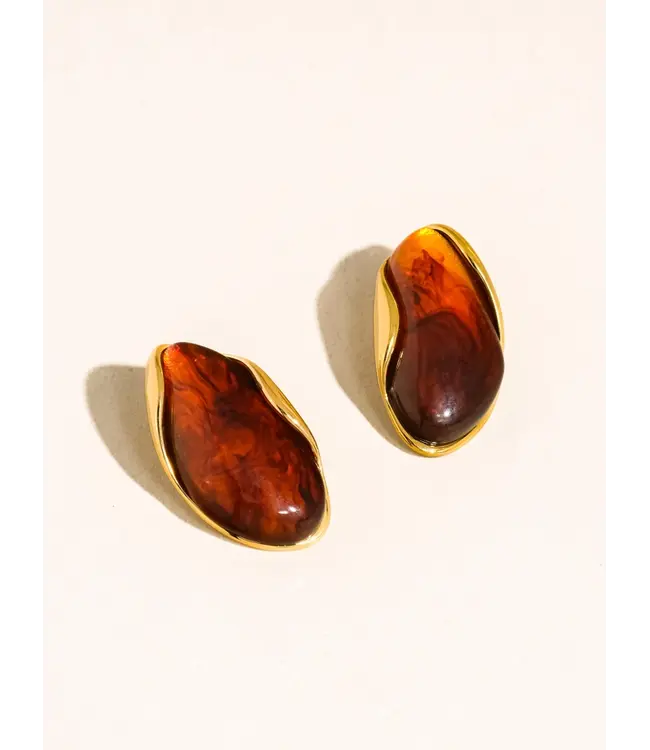 The Maelie Drop Earrings are an 18K gold non-tarnish, 18K gold plated, stainless steel with a statement resin drop design. Read more.
