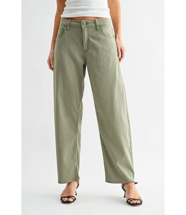 The March Madness Barrel Jeans feature a clean stretch twill comfort barrel style with a relaxed silhouette and mid-rise waist.