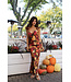 Fall in dress form, Martini Talking features a mix of deep reds and orange floral pattern, sweetheart neckline, dainty ruffle adjustable spaghetti straps, open drop cowl back with a double lining.