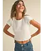 The Milk & Cotton Tee is a closet staple features a mini waffle fabric, scalloped short sleeve, scalloped cropped hemline with a relaxed fit.