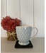 Rise & Shine mug features cute porcelain mug with handle and nice retro shape with polka dot design in pastel blue color, holds up to 430 ml