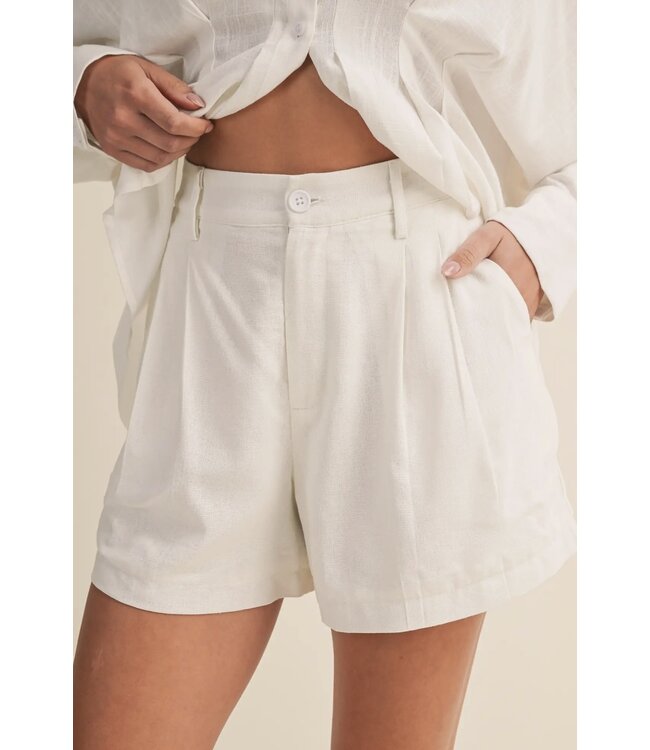 Add these to your warm-weather wardrobe, the Russo Linen Shorts feature a flattering high-waisted silhouette and elegant pleats, making them perfect for sunny days and casual outings. These shorts boast a tailored finish with practical pockets.