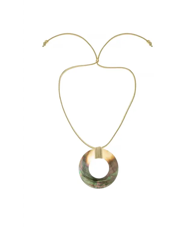 The Shell Circle Necklace features a iridescent Shell Circle Pendant, this a stunning piece that exudes charm and elegance. Crafted from a unique blend of suede and shell, this 24" adjustable necklace
