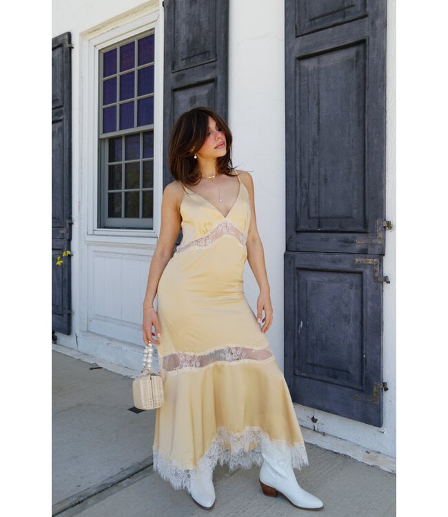 Our Significant Lover Maxi dress is giving the yellow trend a moment, it features a v-neckline, adjustable spaghetti straps, lace cutout and maxi hemline.