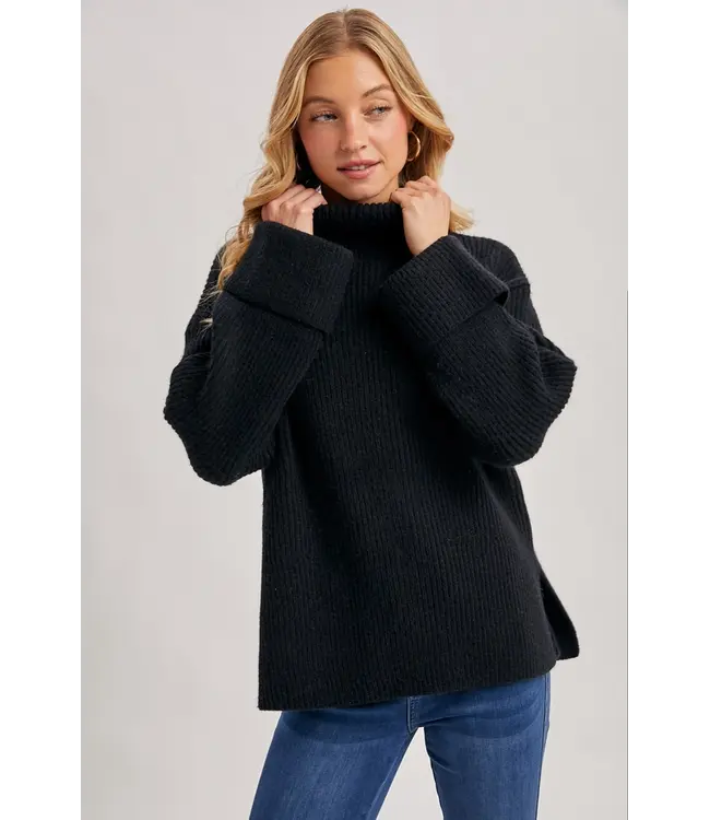 Our Sleepless Night has a loose and roomy silhouette offers a laid-back and effortless vibe and side slit for movement, with its turtleneck and folded sleeves, it still maintains a touch of sophistication amidst its oversized appeal.