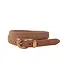Elevate your look with our suede belt featuring a chic gold curve buckle.